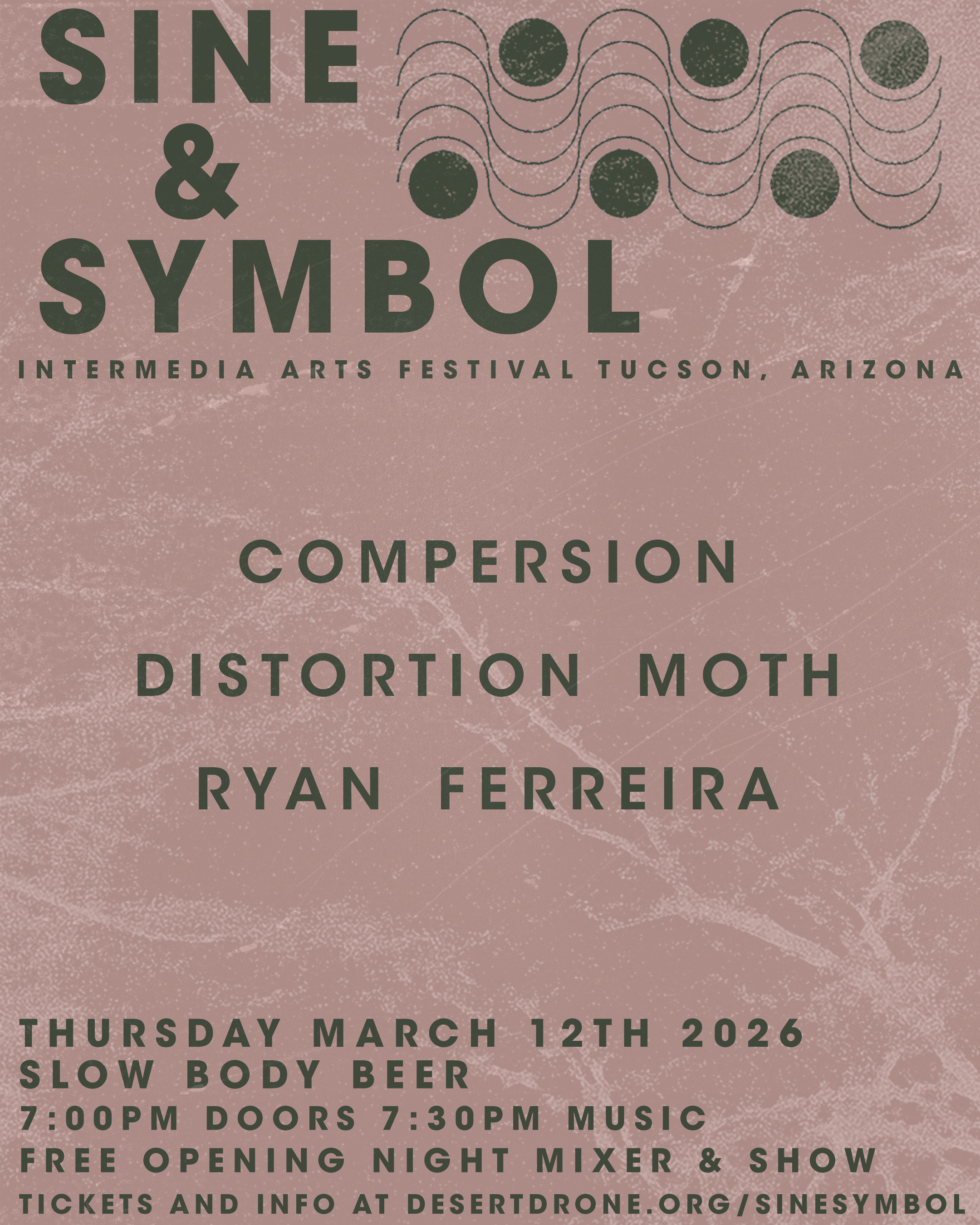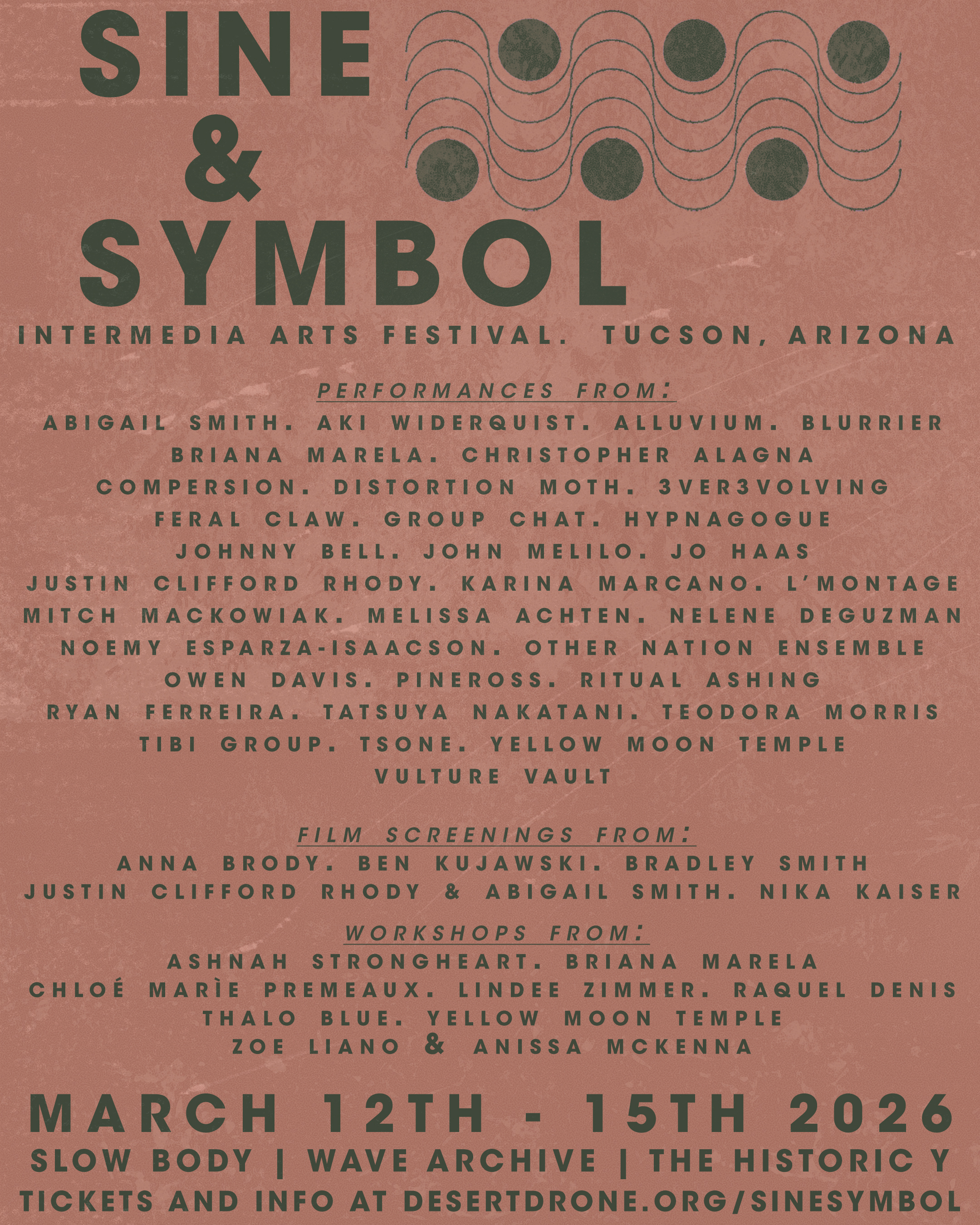 Sine & Symbol is an intermedia arts festival presented by Tea House and Desert Drone in Tucson, Arizona. The 2025 version took place over four days at four different venues throughout downtown Tucson, including Slow Body Beer, Pidgin Palace Arts, MOCA Tucson, and Wave Archive.